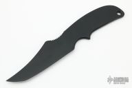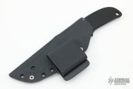 This knife features a black chisel ground blade with a notched thumbrest and full tang construction. .241" Blade Stock. 1.416" Blade Depth. Includes a blade kydex sheath. Excellent Condition.