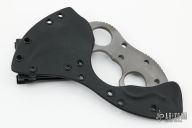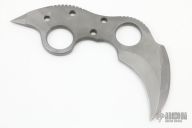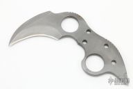 This Military Karambit by Laci Szabo features a bead blasted double edged blade with notched thumbrest, .245" blade stock and 1.941" blade depth. Comes with a kydex sheath with TekLok. Has a few light scuffs, otherwise excellent condition.