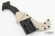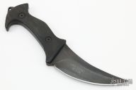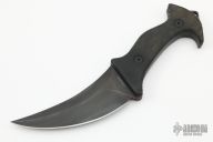 This Omani is a Laci Szabo design executed by Robert Newton, it features a double edged blade, .175" blade stock and 1.856" blade depth, full tang construction with black canvas micarta scales and extended tang with lanyard hole. Comes with a kydex sheath with TekLok. Has a few light scuffs, otherwise excellent condition.