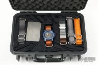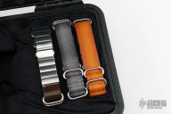 This watch by Layer Watches has an anodized titanium case with a meteorite dial, MokuTi crown and bezel, sapphire glass. 45mm case. Has a Swiss automatic movement. Comes with a Pelican case, 4 leather bands, a stainless steel bracelet and COA. New from maker at the 2022 Blade Show Texas.