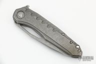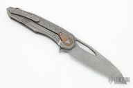 This Sigil MK6 by Microtech Knives features an Apocalyptic finished blade with thumb hole and flipper, notched thumbrest. The handle has an Apocalyptic finished titanium frame, tip up clip and backspacer with a distressed copper overtravel stop, stainless lockface insert. Comes with original box and papers. S/N0146, 12/2016. Has some patina on the copper, has some scuffs and scratches on the blade and handle, otherwise great condition.