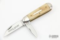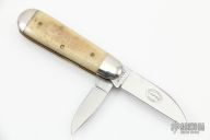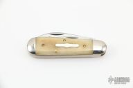 This two blade slipjoint by Great Eastern Cutlery. The handle features polished stainless bolsters front an rear. Brass pins, stainless escutcheon, Appaloosa bone covers. Includes original box and papers. S/N #47 of 50. Has some light scuffs and scratches, otherwise excellent condition.