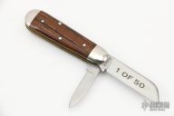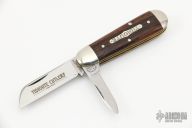This two blade slipjoint by Great Eastern Cutlery. The handle features polished stainless bolsters front an rear. Brass pins, stainless escutcheon, wood covers. Includes original box and papers. S/N #03 of 50. Has some light scuffs and scratches, otherwise excellent condition.