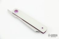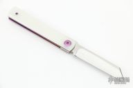 This Gurdak-o-Kami by Greg Gurdak features a mirror polished blade with "RJ II" on the b-side of the blade. The handle has glow scales, anodized titanium hardware and liners, textured and anodized titanium backspacer. Comes with a zippered case. Excellent condition.