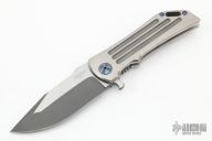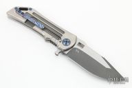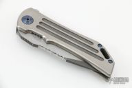 This Dominator Level 2 V4 by Darrel Ralph features a two-tone finished blade with notched thumbrest and flipper. The handle has a satin finished titanium frame with a mokuti tip up clip and backspacer. Rides on bearings, nice detent, lockup and blade seating. Comes with a zippered case and COA. Has a few light scratches, otherwise excellent condition.