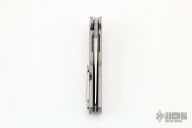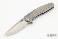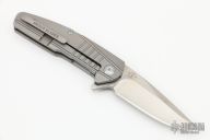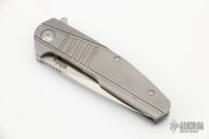 This knife is a collaboration between Brous Blades and Turpin Knives, it is a limited edition of 500, this one is #355. It features a satin finished spear point blade with notched thumbrest and a flipper. The handle has a milled and bead blasted titanium frame, tip up bead blasted stainless steel clip, stainless steel lockbar insert, 3-piece backspacer made of black G-10 and stainless steel, lanyard pin at the rear. Comes with original box and papers. Excellent Condition.