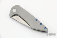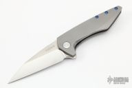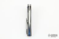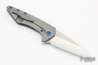 The Koenig Mini-Goblin 3 inch folding pocket knife is a collaboration between Edison Barajas of Sharknivco and Koenig Knives. The Mini-Goblin features a 3 inch two-tone blade with notched thumbrest and flipper. The handle has a bead blasted titanium frame with an anodized titanium backspacer and bead blasted titanium tip up clip with hidden screws. Comes with original box and COA dated 9/4/19. Excellent condition.