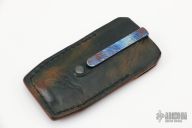 Brown Leather Pocket Sheath with timascus clip by Jared Oeser. Has some scratches.