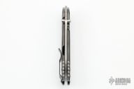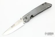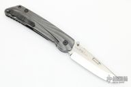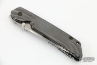 "The blade is convex on both sides in the tradition of the highly praised Japanese sword. This shape is both sharp and strong, and can still slice paper even after the 1,000 of hemp rope cuts. Using this blade form is one superb method of making an edge thick without losing of its sharpness. This is a knife of preeminent sharpness. You can enjoy its strong cutting capabilities for a long time. Even if used for rigorous cutting, the blade will not bite thanks to its convex shape. Other knives often will bite, and may nick if it is pulled out suddenly at that time. This knife scratches the plate of china. Please do not use it to cut food on the plate." The handle is sculpted DLC Titanium and tip up black stainless steel clip. Comes with original box and papers. Excellent condition. #473 on blade.