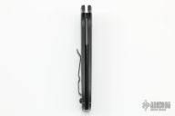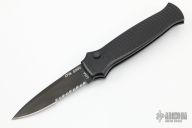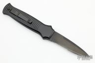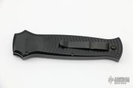 The Bodyguard side opening auto by Piranha Knives features a black partially serrated blade. The handle has a black aluminum frame with a black titanium pocket clip. Has some minor wear on the edges of the frame, otherwise excellent condition.