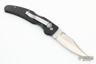 This Renegade by Spyderco features a satin finished clip point blade with a plain edge and thumbhole. The handle has a black G-10 frame with a tip down SS clip. Has a few light scuffs, otherwise excellent condition.