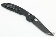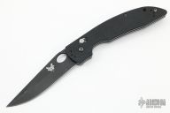 This 806D2 AFCK Axis lock folder by Benchmade has a black spear point blade with thumb hole, and notched thumbrest. Handle is black G-10 over titanium liners, black fiber back spacer, lanyard hole. 4 way adjustable pocket clip. Includes original box and papers. Has some scuffs/scratches/wear, otherwise good condition.