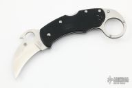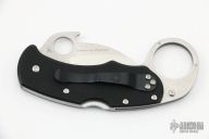 This Karahawk by Spyderco features a satin finished hawkbill blade with thumbhole and wave feature. The handle has black G-10 scales with stainless steel liners and backspacer, tip up black stainless clip, left or right reversible. Comes with original box and papers. Excellent condition.