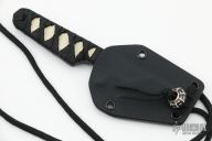 This Tanto Dashi by Sam Eddleman has a DLC chisel ground tanto blade with .131" blade stock, .951" depth. The handle has black Ito wrap over white stingray skin. . Comes with two kydex sheaths. Excellent condition