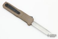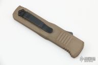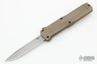 This is a 14808BK Turmoil double action OTF auto with a stonewashed clip point blade by Heckler & Koch. Tan aluminum frame with tip down black stainless clip, left or right reversible. Includes original packaging and paperwork. Excellent condtion.
