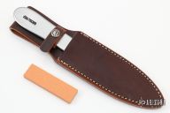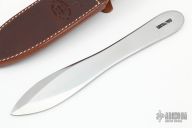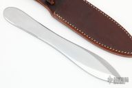 This Model 9 Pro-Thrower by Randall Made Knives. It features a satin finished blade and handle with .212" stock 1.442" blade depth. Solid one piece construction. Accurately balanced and scientifically designed for those desiring a practically indestructible throwing knife. Comes with original brown leather sheath and paper wrapping. New from maker.