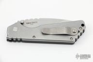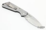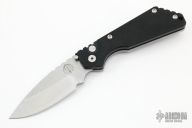 This SA3 Pro-Strider SnG Auto by Pro-Tech features a stonewashed blade with notched thumbrest. The handle has a black G-10 and stonewashed stainless steel frame with matching tip up clip. Excellent condition. Comes with original box and papers.