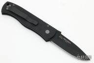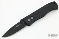 This CQC7A by Pro-Tech Knives is an Emerson design, it features a black spearpoint blade with notched thumbrest. The handle has a black aluminum frame with lanyard hole, black tip up stainless steel clip and blasted hardware. Comes with original box, papers and sheath. Production Run 7 #233. Excellent condition.