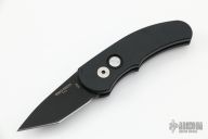 This is a Runt J4 "Jalapeno" by Pro-Tech featuring a black handle and a black blade. Coil spring. California legal. PR3 s/n 267. Excellent condition. Comes with original box and papers.