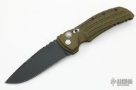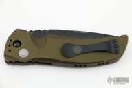 This EX-A01 by Hogue Knives is an Allen Elishewitz design, it features a black drop point blade with notched thumbrest. The handle is OD Green aluminum, tip up or down reversible black stainless steel clip. Has safety. Comes with Hogue box and papers. Excellent condition.