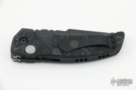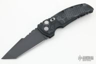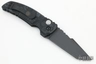 This Auto by Hogue features a black tanto blade with notched thumbrest. The handle is is black "G-Mascus" G-10, tip up or down reversible black stainless steel clip. Has safety. Comes with original box and papers. Excellent condition.