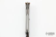 The blade of the Ti-Lock is fully tumbled piece of CPM-S35VN with a darkened titanium lock bar attached for both aesthetic and function. It's spear point blade has a hollow grind with a razor sharp polished edge applied. A dual thumb stud which has been anodized bronze is present for both opening and closing this knife.