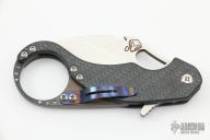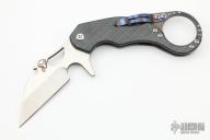 This Burung by Medford features a tumble finished blade with thumbhole and flipper. The handle has a carbon fiber and anodized titanium frame with a black stainless steel backspacer and a tip up reversible clip. Nice detent, lockup and blade seating. Comes with original box and papers dated May 19, 2016. Excellent condition.