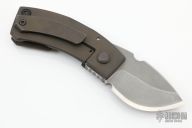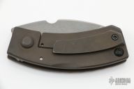 This Apex from Crusader Forge features a stonewashed blade. The handle scales are crafted from titanium slabs that are then milled and anodized. Tip up titanium clip with matching finish. Nice detent, lockup and blade seating.  Has a couple light scuffs, otherwise excellent condition. Comes with original box and COA