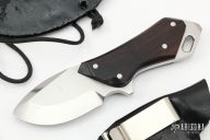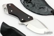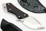 This Hartsfield Style Fixed Blade from Blade Rigger features an satin finish blade with scandi/zero grind. The handle is comprised of ironwood scales over full tang construction with .242" blade stock and 1.759" blade depth. Includes kydex sheath with black leather wrap and belt clip. Comes with a Rigger coated kydex sheath as well. Serial #000 marked on blade. Excellent condition. Comes with a zippered case.