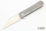 This MBK Slayback by Monterey Bay Knives is a Ray Laconico design, it features a satin finished ZDP-189 San Mai blade with notched flipper. The handle has a bead blasted titanium frame with stainless steel liner, tip up titanium clip. Comes with zippered case. Excellent condition.