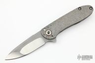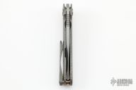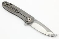 This Tailwhip V2 Flipper by Direware Custom Knives features a two-tone blade with swedge, notched thumbrest and flipper. The handle is comprised of a textured titanium frame with matching tip up clip that has also been textured. Excellent condition.