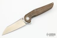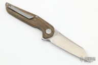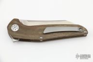 This Progeny features a satin blade with dual thumb studs and a notched flipper. The handle features green canvas micarta scales with a stainless steel liner and a matching tip up pocket clip. Includes the original box. Excellent Condition.
