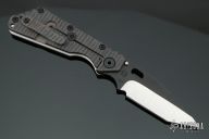 In 1988, he began making specialized knives for use by the military. This turned out to be fortunate turn of events, both for Mick and for the knife using world at large. Mick’s approach was to not get burdened by the weight of past designs. He started with a tabula rasa, a clean slate, informed only by his own experiences and knowledge of what a soldier needed in a knife. The knives he made didn’t look like the hunter-inspired knives seen in most PXs; instead they were almost brutish in their functionality: beefy, solid, and with unbreakable ¼” stock full tangs. These knives were the first indication of his innovative approach: in addition to their utilitarian design, the knives carried a subdued finish and subdued sheaths. No one carrying a Strider knife was going to be spotted because of sunlight glinting off of polished steel or a glossy leather sheath. Soldiers, policemen, and other men going into harm’s way couldn’t buy them fast enough. Mick sampled some good ideas, but made them great. For instance, he was not the first to wrap a knife handle with paracord, but he was the first to do it in a way that was tough enough for sustained infantry use. His knife line grew over the following years to include different varieties of fixed blades, all distinctive and many with specialized uses. But constant in all of them was a disregard for convention, and a desire to try new ideas. An example of this was the Ajax – it featured a very wide blade surface clearly designed to inflict damage. It drew on the weapons carried by Roman legionnaires, yet was modern and usable in the 21stCentury battlefield. Mick also worked on his technical skills, always striving to become better at the physical craft. At the 2002 Blade Show, a group of the best tactical knifemakers in the country decided to compete with each other to produce the most innovative and interesting fixed “battle blade” at the show. Mick’s entry, an incredible integral knife made out of ½” titanium stock with a zippered composite blade, gorgeous handles, and integral guard was the unanimous winner, and effectively retired the competition.