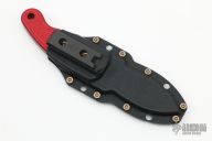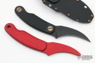 This Elvia by Turner CNC features a black 3v blade with a full tang construction.  .185" Blade Stock.  1.194" Blade Depth.  The handle has a milled checkered black g10 scales. Comes with a kydex sheath and the knife will fit in either direction, original box, and COA. 60HRC with Cryo.  Includes a red aluminum trainer. Excellent condition.