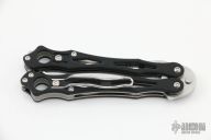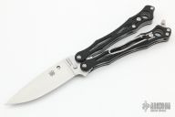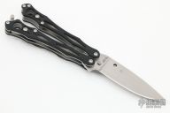 This Spyderfly 2 Balisong by Spyderco has a satin finished blade. Handle is black G10 over stainless steel liners and stainless steel paper-clip style pocket clip. Excellent condition.