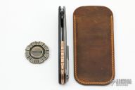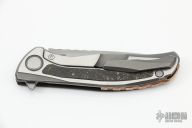 This Hati CCKS-Spring Edition by Shirogorov Knives features a stonewashed blade with notched thumbrest and flipper. The handle has a bronze marble carbon fiber and stonewashed titanium frame with matching tip up clip, bronze backspacer with lanyard hole. Rides on bearings, nice detent, lockup and blade seating. Comes with COA #32, Cova Leather Pouch, and a HiTex Antique Bronze Shirogorov Chip with original box. New from maker at the 2022 CCKS.