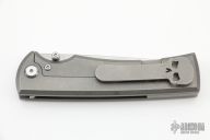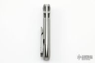 This Chaves Ultramar Liberation Drop point features a satin finished blade with the Chaves logo. The handle is made up of tumbled titanium, skull pocket clip (positioned for tip up carry), and a matching titanium backspacer. Comes with original box. Excellent condition.