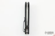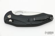 This 808 Loco by Benchmade Knives features a stonewashed blade with thumbhole. The handle has black G-10 scales with black stainless steel liners, stainless steel backspacers, tip up black stainless clip, lanyard hole at the butt. Has some wear on the clip, otherwise excellent condition.
