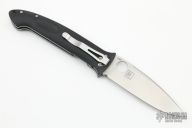 This 740 Dejavoo by Benchmade features a stonewashed drop point blade with, false top edge and thumbhole. The handle has black G-10 scales, stainless steel and titanium liners, and a black FRN backspacer, tip down stainless steel clip. Excellent condition.