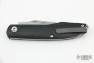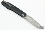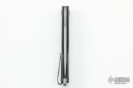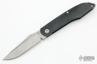 This Slygnet Slipjoint by Nick Swan features a blasted blade with fullers. The handle has black paper micarta covers with stainless steel backspacer with lanyard hole, blasted titanium tip up clip. Excellent condition.