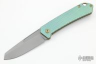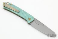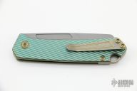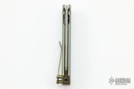 This OEM Slim is a Richard Rogers Design and features a bead blasted blade. The handle is milled and anodized titanium with blasted titanium backspacer, hardware and tip up clip. Nice detent, lockup and blade seating. Comes with original packaging and brown leather slip sheath. New condition.