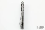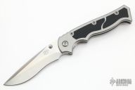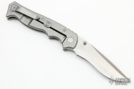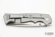 This limited edition (#08 of 89) Walter Brend Marauder has a hand ground CPM 154 M2 style blade with "Hand Satin Finish with a rockwell hardness of 58-59. The recurve drop point blade geometery features a nice swedge and jimping on the spine near the handle. Ambidexterous thumb studs allow the knife to fire open smoothly with no lock rock or blade play. Stonewashed titanium handle with black Krayton inserts provide a great grip with superior ergonomics. Lock face is Tungsten Carbide hardened and lock bar has an over travel stop. Black G-10 backspacer compliments the handle inserts nicely. Pocket clip is right hand, tip up carry. Comes with original box, zippered case and papers. Excellent condition.