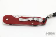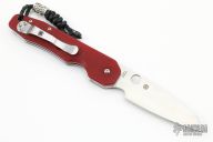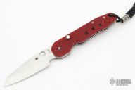 This Smock by Spyderco has a satin finish sheepsfoot style blade. The handle features red G-10 scales over stainless steel liners with a reversible stainless steel pocket tip up pocket clip. Comes with original box and paperwork. Excellent condition.