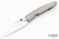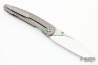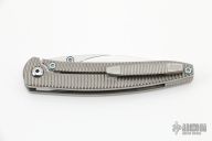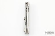 This Exponent by Craig Brown Knives features a drop point stonewashed polish blade and single zirconium thumbstud. The handle has a tumbled titanium frame with mill pattern, tip up carry titanium pocket clip and backspacer. Nice detent, action, blade seating and lock up. Comes with an original hard case with certificate #166. Excellent condition.