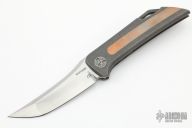 WingManEDC is proud to introduce the second knife in our continued pursuit to offer an incredible selection of iconic collaborations. The YUREI is an unmistakable design by custom knifemaker David Santiago. An all titanium framelock folder with a copper inlay. The blade is M390 steel in a tanto edge and a gorgeous belt satin finish. The blade utilizes iconic Lee Williams features Lee Williams’ patented Kickstop mechanism. Comes with original box and papers. Excellent condition.