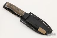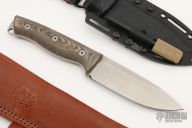 This knife by White River Knife and Tool features a tumbled blade with a full tang construction, .164" blade stock and 1.339" blade depth. The handle features green canvas micarta scales.  Includes a steel striker too, a kydex sheath and a leather sheath. Comes with original box and papers. Excellent Condition.