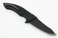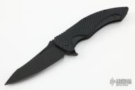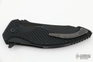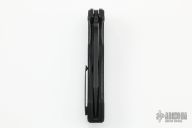This T-4 by Brous Blades features a black blade with swedge, notched thumb rest and flipper. The handle is comprised of milled black G10 over steel liners and black G10 backspacer. The steel tip up clip is positioned for tip up, right hand carry. Great blade seating, detent and lock up. Excellent condition. #229/500