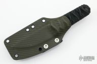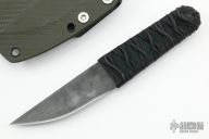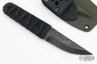 This Kwaiken Zero by Jason Stout features a chisel ground blade with hamon, 0.143" blade stock and 1.020" blade depth. The handle is comprised of black cord wrap over black cord, hidden tang construction. Has some light scuffs, otherwise excellent condition. Comes with kydex sheath and COA dated 9/16/18