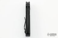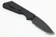 This Pro-Strider SNG by Pro-Tech and Strider Knives features a black blade with notched thumbrest. The handle has a black aluminum frame with black hardware and black stainless steel tip up clip.  There is a tritium lantern inlaid into the push button.  Comes with original box and papers. #46 of 50. New condition.