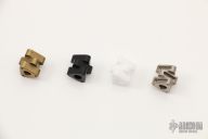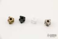White Teflon Cam Bead. Black Delrin Cam Bead. Grade 2 Titanium slotted cam bead. Brass Cam Bead. All in excellent condition. All come with original card except the brass one which comes with a sticker.